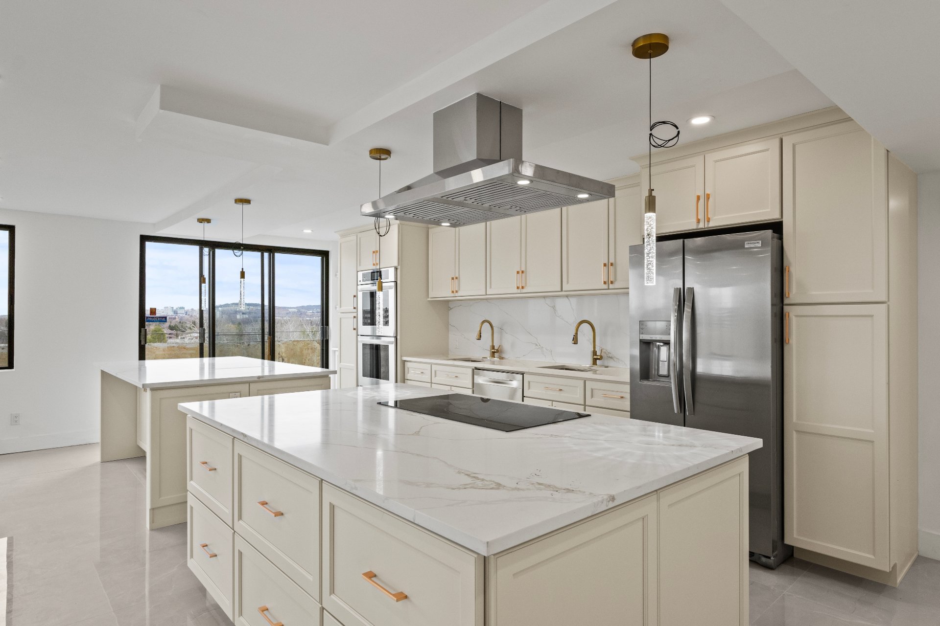 Découvrez le summum du luxe au 5740, avenue Rembrandt. Dès votre entrée, vous serez immédiatement séduit par cette somptueuse unité penthouse. Méticuleusement rénovée, elle propose une cuisine haut de gamme dotée d'électroménagers de fine pointe, de deux îlots aux comptoirs de quartz, d'un coin déjeuner et d'une abondante luminosité naturelle. Le condo offre trois chambres à coucher, dont une chambre principale avec salle de bain attenante et spacieux garde-robe walk-in. L'aire de vie à aire ouverte est idéale pour recevoir et créer des moments inoubliables avec vos invités.Cédulez votre visite dès maintenant