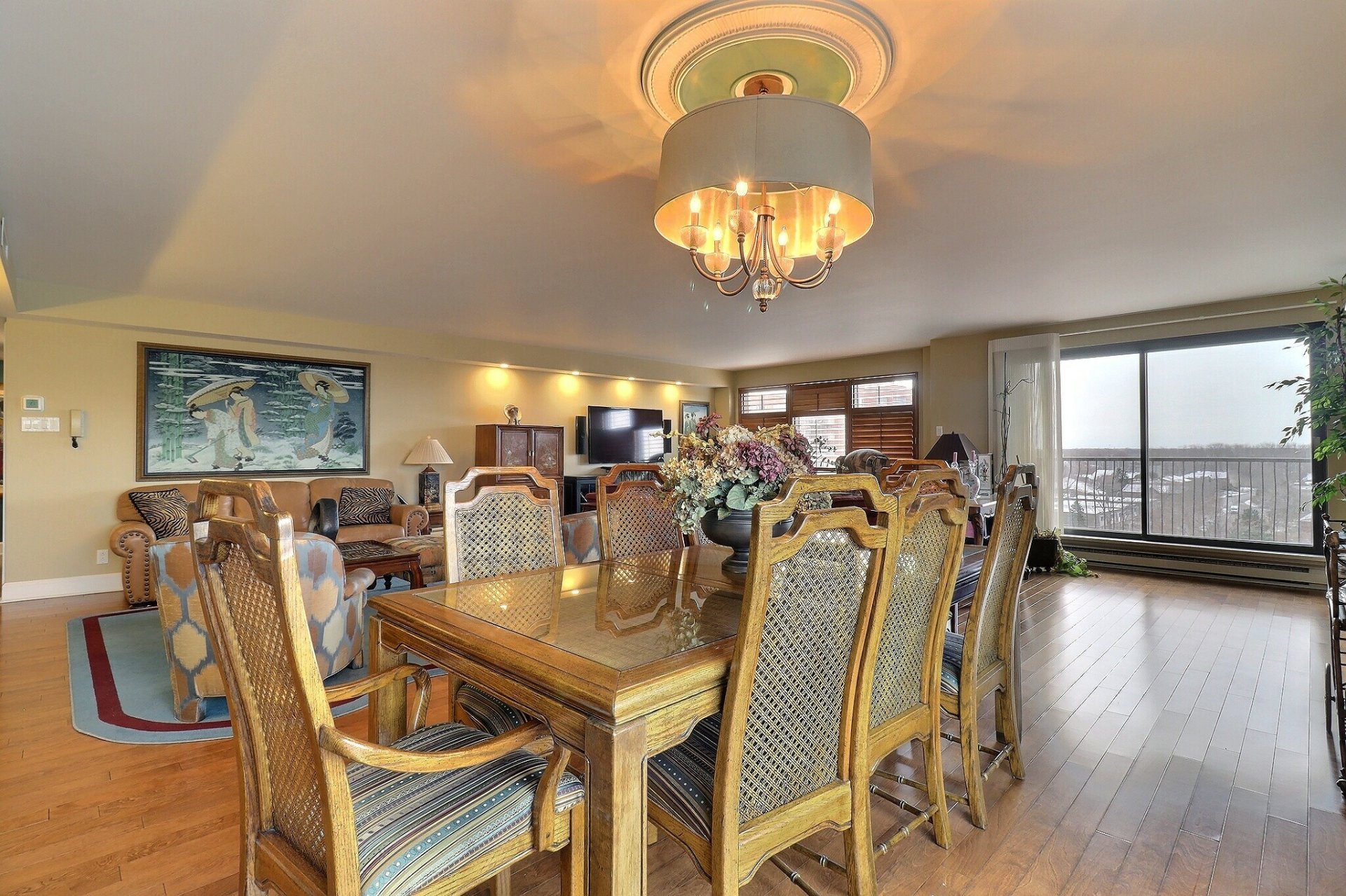 * Salon/salle à manger à aire ouverte avec grandes fenêtres