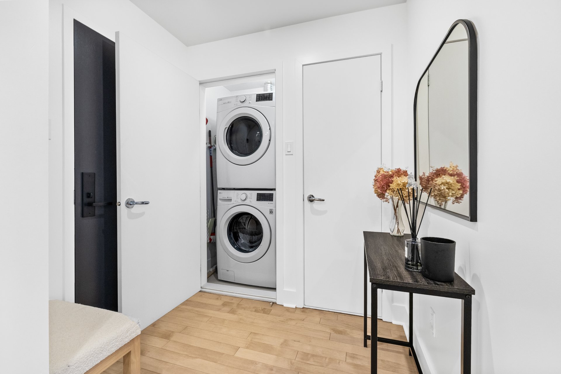 Tous les électroménagers de cuisine (réfrigérateur/congélateur, cuisinière/four, lave-vaisselle, micro-ondes), laveuse/sécheuse, tous les luminaires de plafond, tous les habillages de fenêtres, le BBQ, 1 Stationnement Intérieur et 1 espace de rangement.