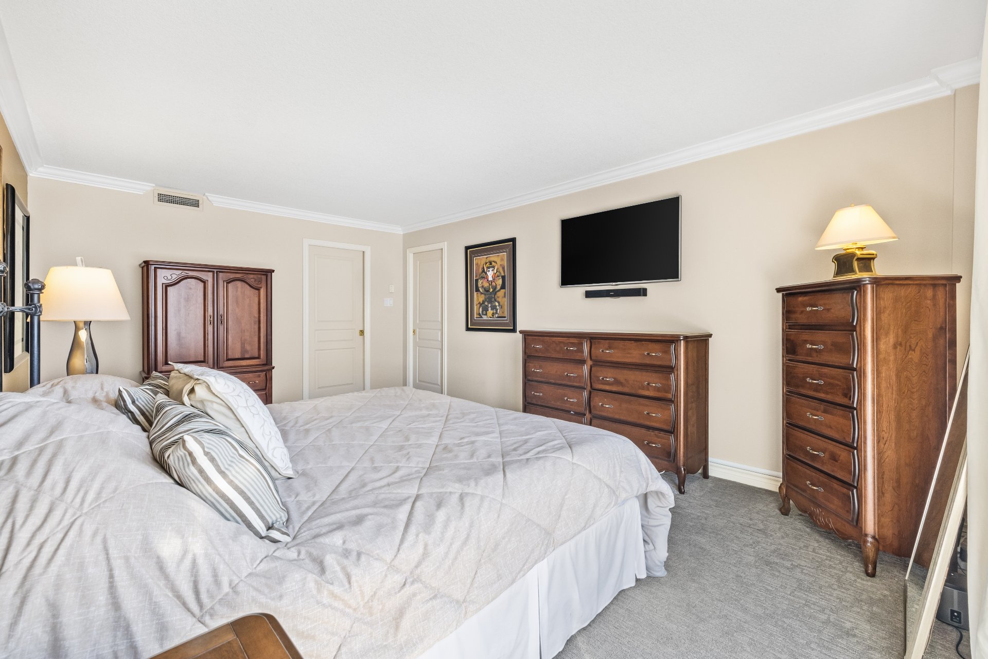 Welcome to this bright and spacious corner unit at the prestigious Princess VI in Saint-Laurent. Featuring oversized windows that flood the space with natural light, a generous primary bedroom with a walk-in closet and ensuite bathroom, ample storage throughout, and a private balcony with sweeping views. Currently configured as a 2-bedroom, 2-bathroom, the original 3-bedroom layout can easily be reinstated. Includes two indoor parking spaces & a storage locker. Access to building amenities such as a gym, sauna & guest parking.