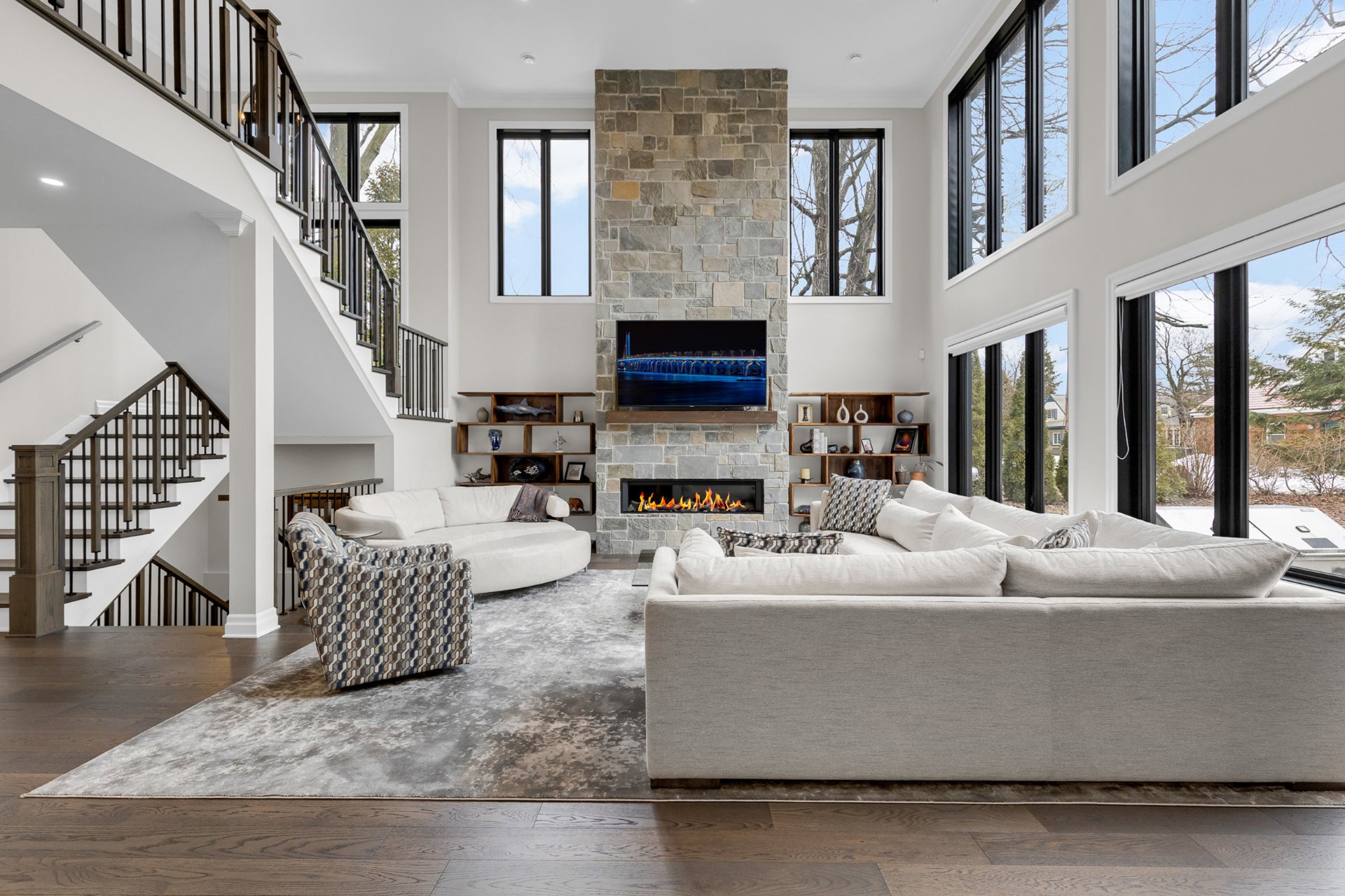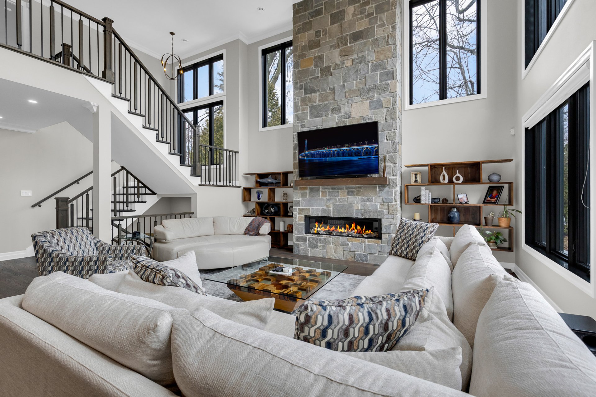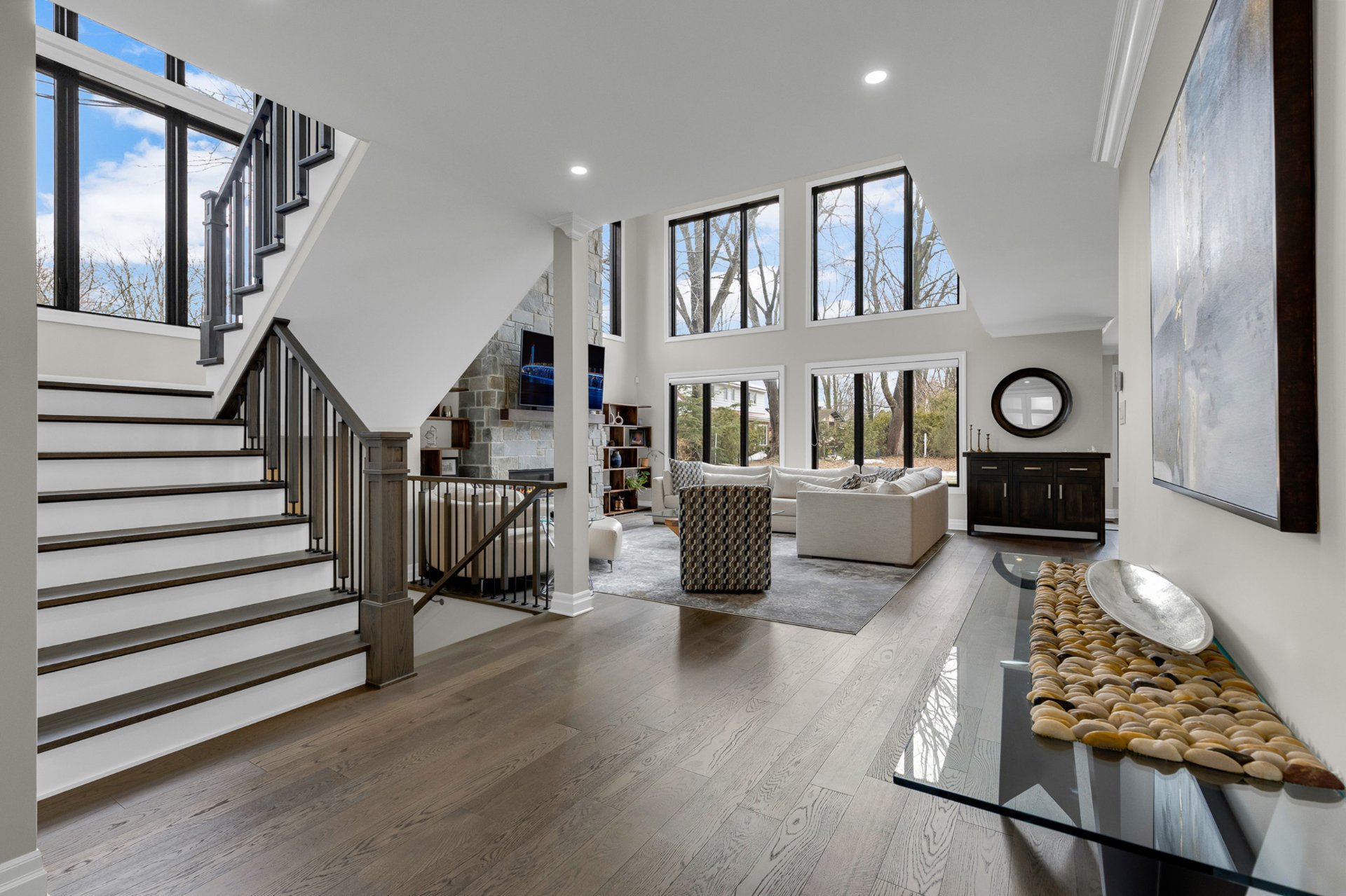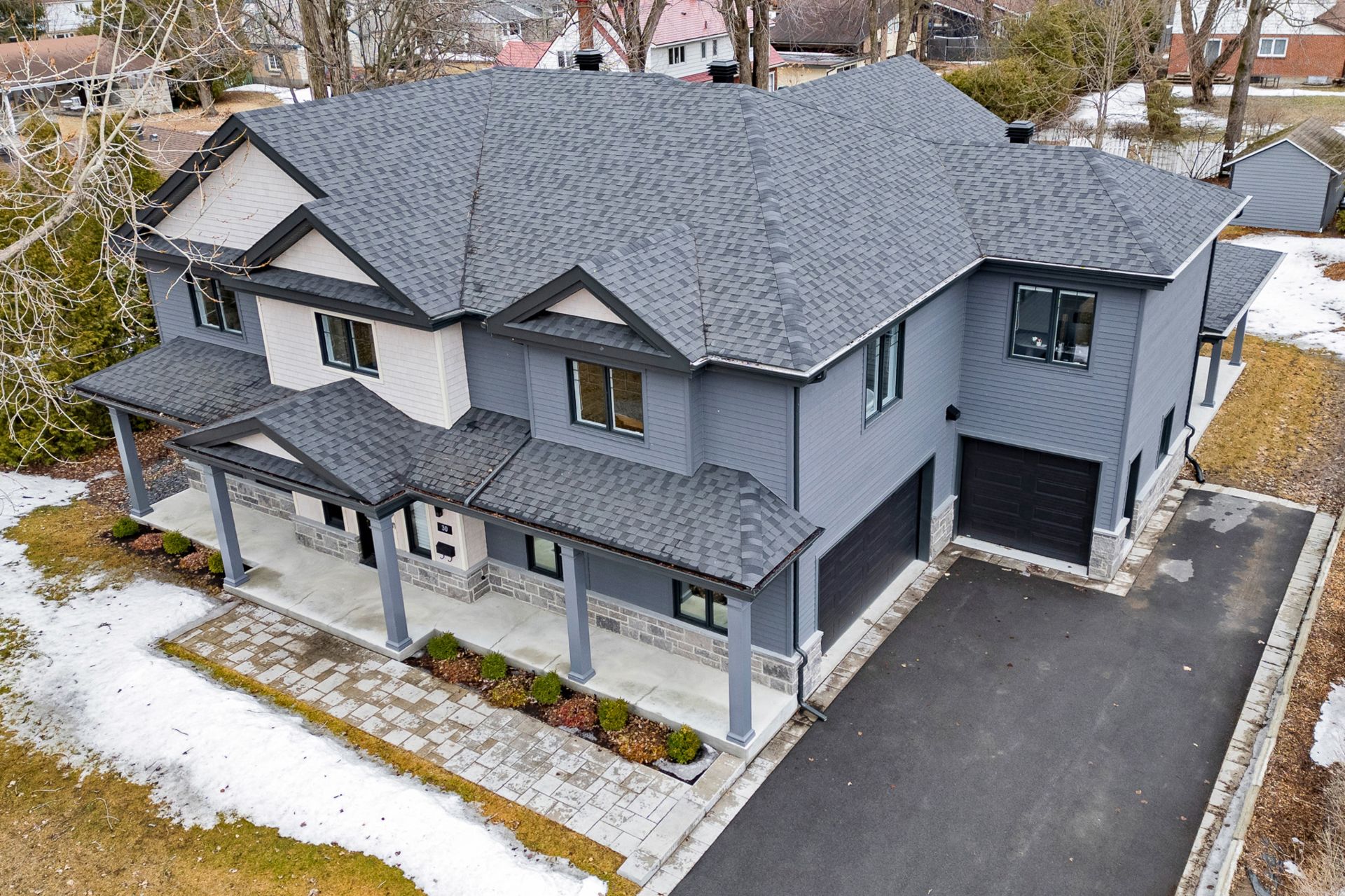 Bienvenue dans cette exceptionnelle maison de luxe construite sur mesure en 2023, idéalement située dans un cul-de-sac paisible de Beaconsfield. Nichée sur un terrain de près de 17 000 pi², cette demeure de maître de 4+1 chambres et 4,5 salles de bain offre plus de 5 000 pi² d'espace de vie élégant. Elle comprend une impressionnante salle familiale sur deux étages avec fenêtres pleine hauteur et foyer, une cuisine gastronomique avec îlot surdimensionné et office, de magnifiques planchers de bois franc, une luxueuse suite principale, un sous-sol aménagé et l'une des plus grandes terrasses couvertes du secteur. Les rêves peuvent devenir réalité