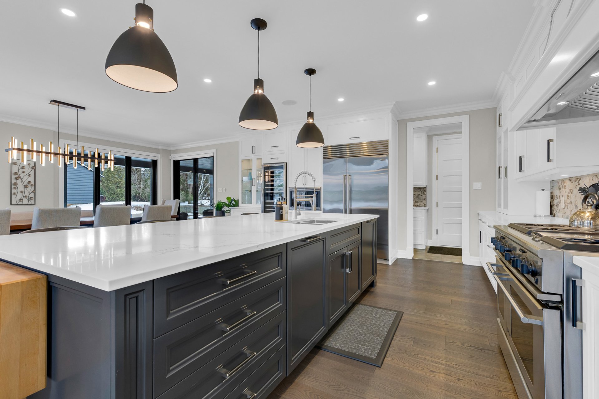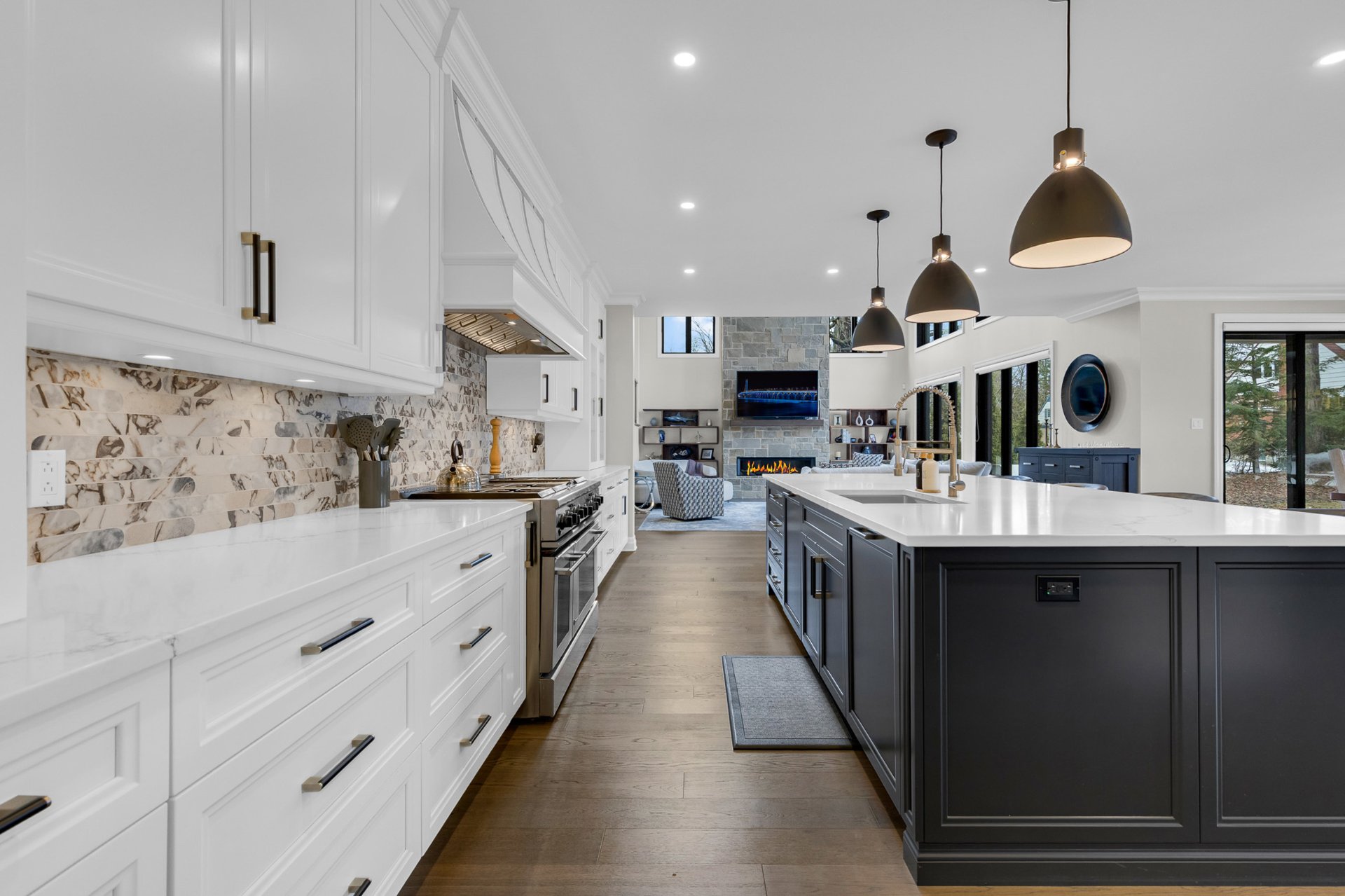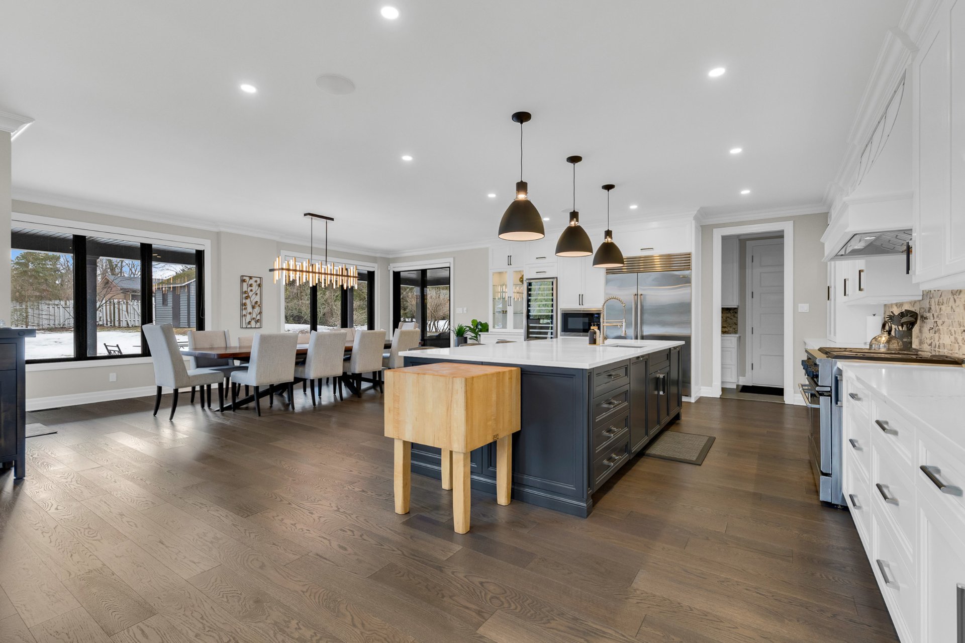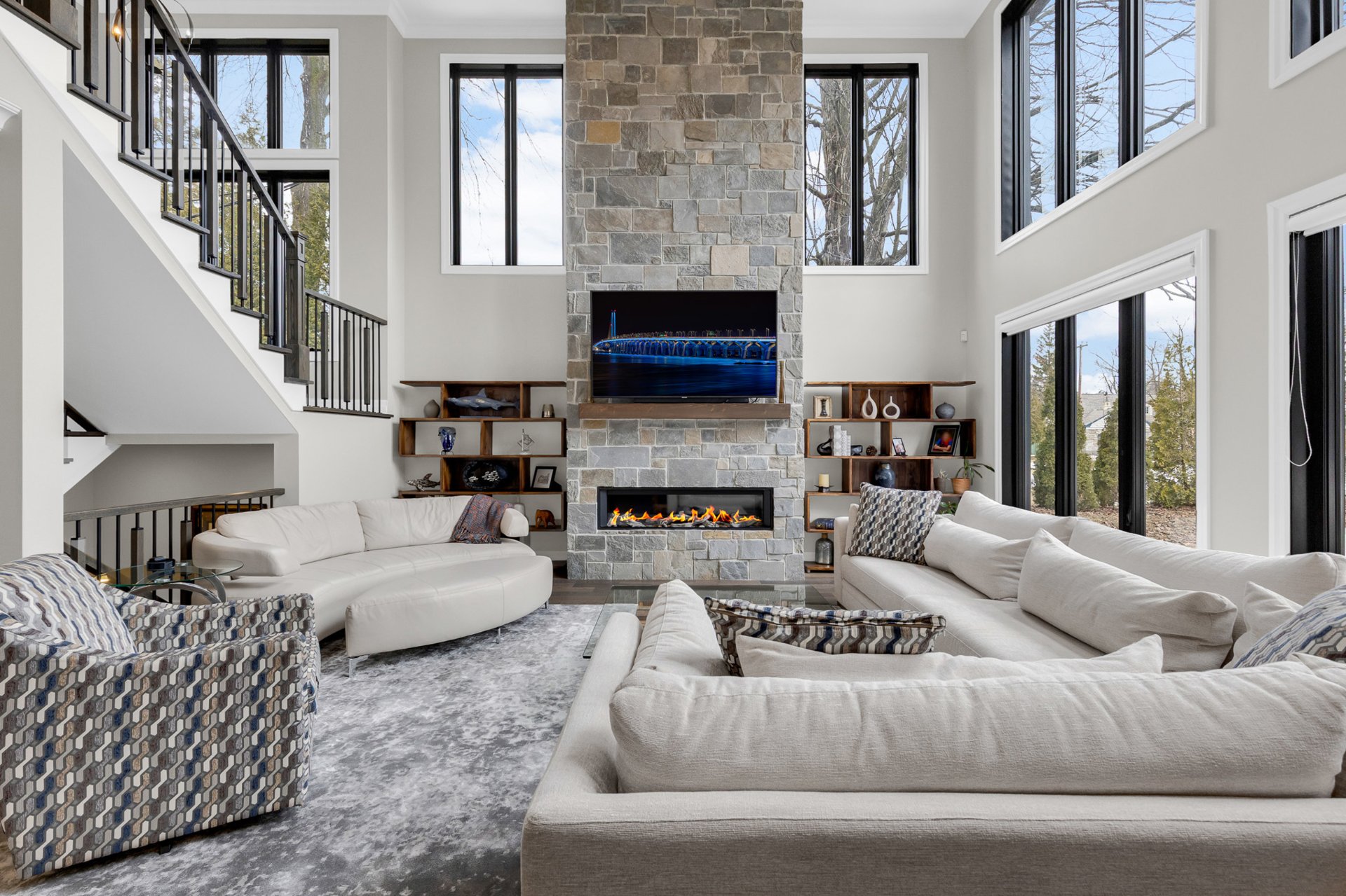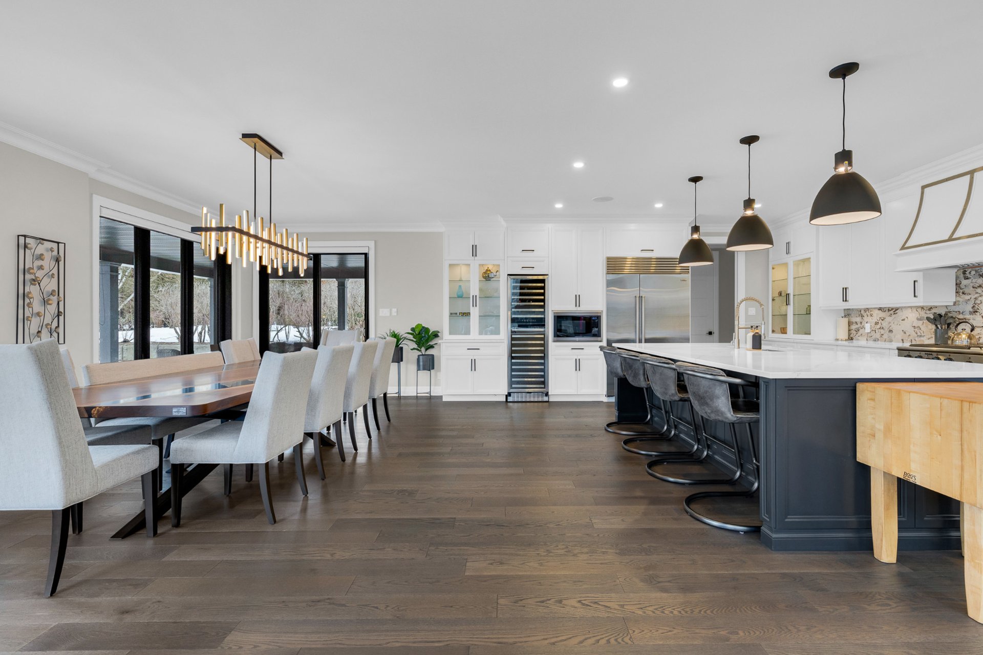 Bienvenue dans cette exceptionnelle maison de luxe construite sur mesure en 2023, idéalement située dans un cul-de-sac paisible de Beaconsfield. Nichée sur un terrain de près de 17 000 pi², cette demeure de maître de 4+1 chambres et 4,5 salles de bain offre plus de 5 000 pi² d'espace de vie élégant. Elle comprend une impressionnante salle familiale sur deux étages avec fenêtres pleine hauteur et foyer, une cuisine gastronomique avec îlot surdimensionné et office, de magnifiques planchers de bois franc, une luxueuse suite principale, un sous-sol aménagé et l'une des plus grandes terrasses couvertes du secteur. Les rêves peuvent devenir réalité