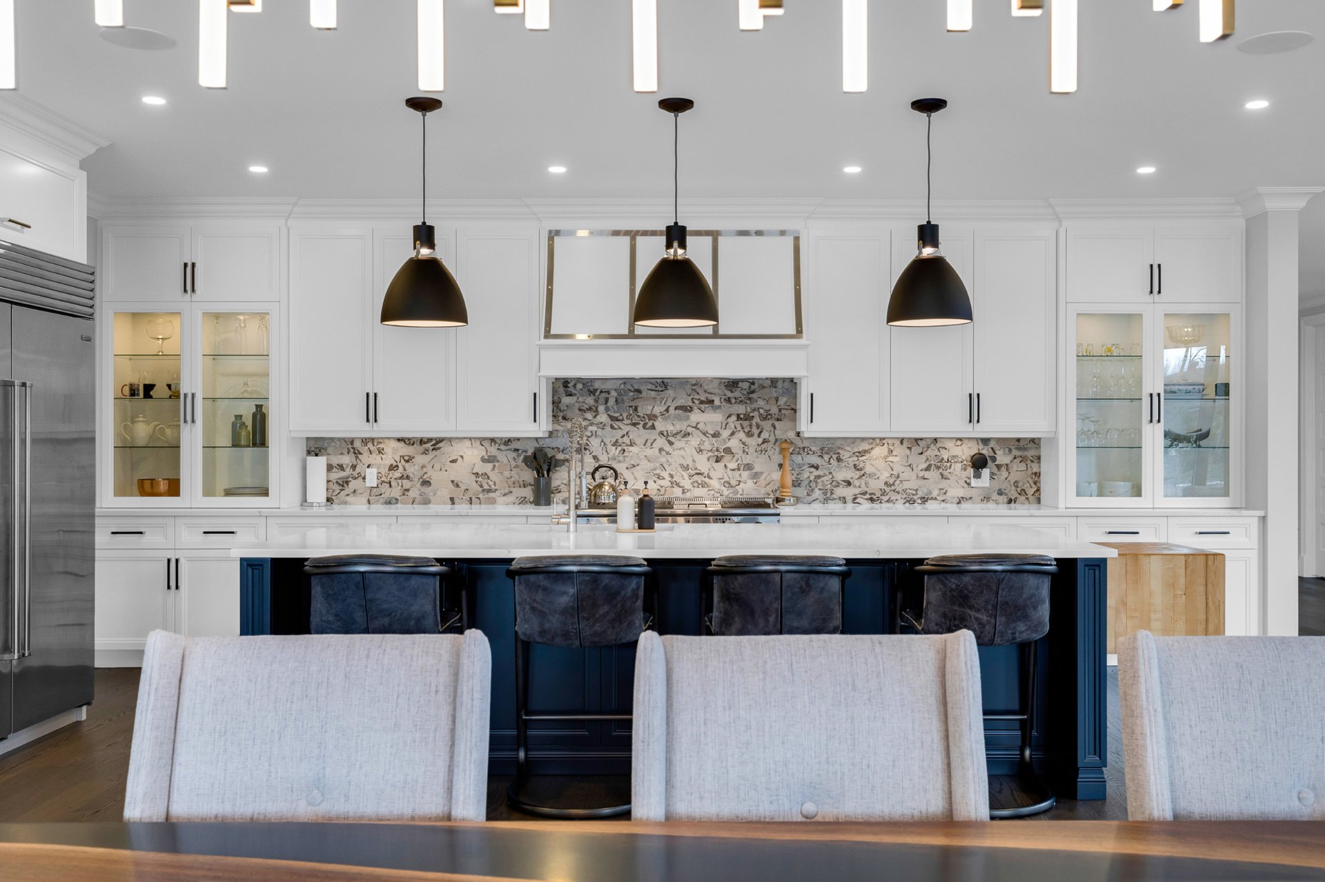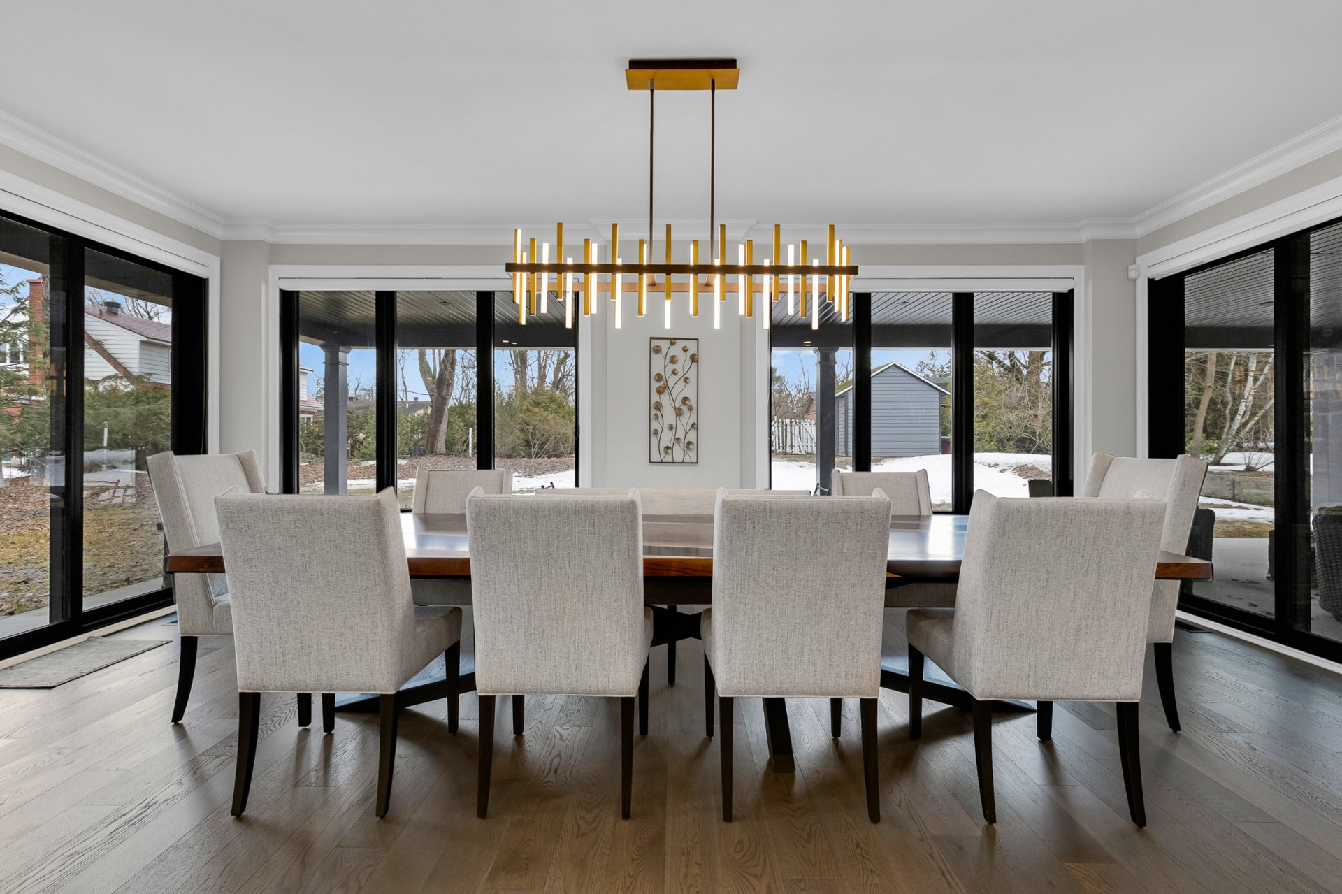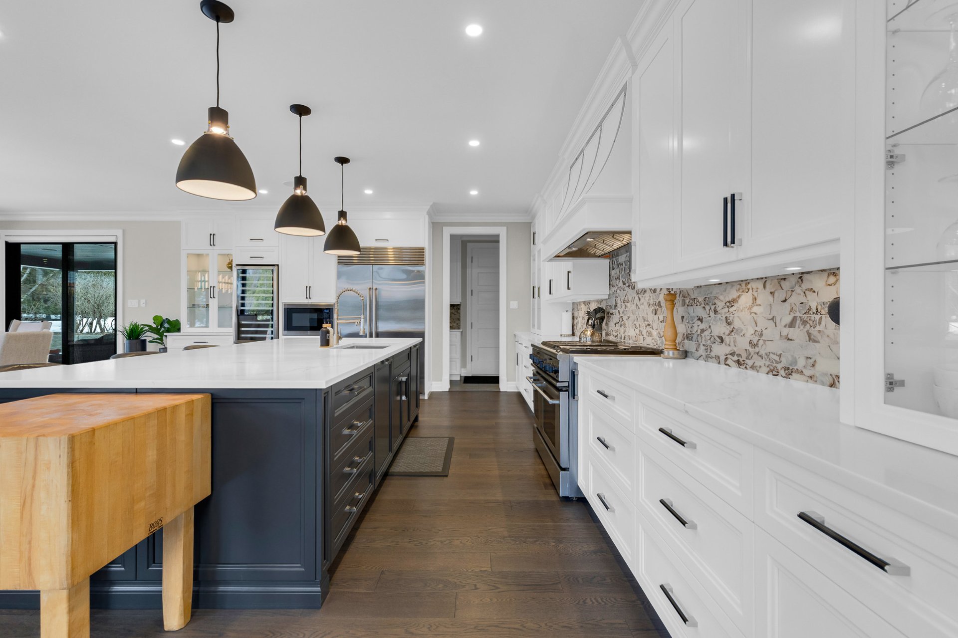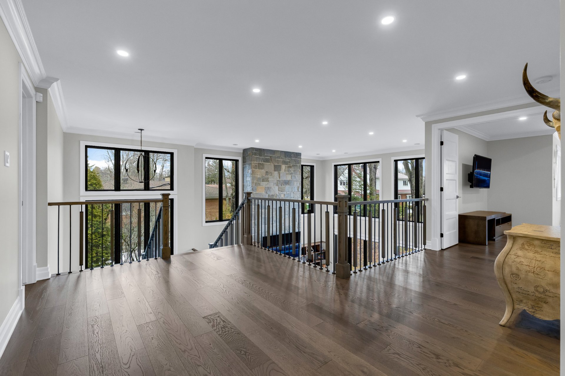 Bienvenue dans cette exceptionnelle maison de luxe construite sur mesure en 2023, idéalement située dans un cul-de-sac paisible de Beaconsfield. Nichée sur un terrain de près de 17 000 pi², cette demeure de maître de 4+1 chambres et 4,5 salles de bain offre plus de 5 000 pi² d'espace de vie élégant. Elle comprend une impressionnante salle familiale sur deux étages avec fenêtres pleine hauteur et foyer, une cuisine gastronomique avec îlot surdimensionné et office, de magnifiques planchers de bois franc, une luxueuse suite principale, un sous-sol aménagé et l'une des plus grandes terrasses couvertes du secteur. Les rêves peuvent devenir réalité