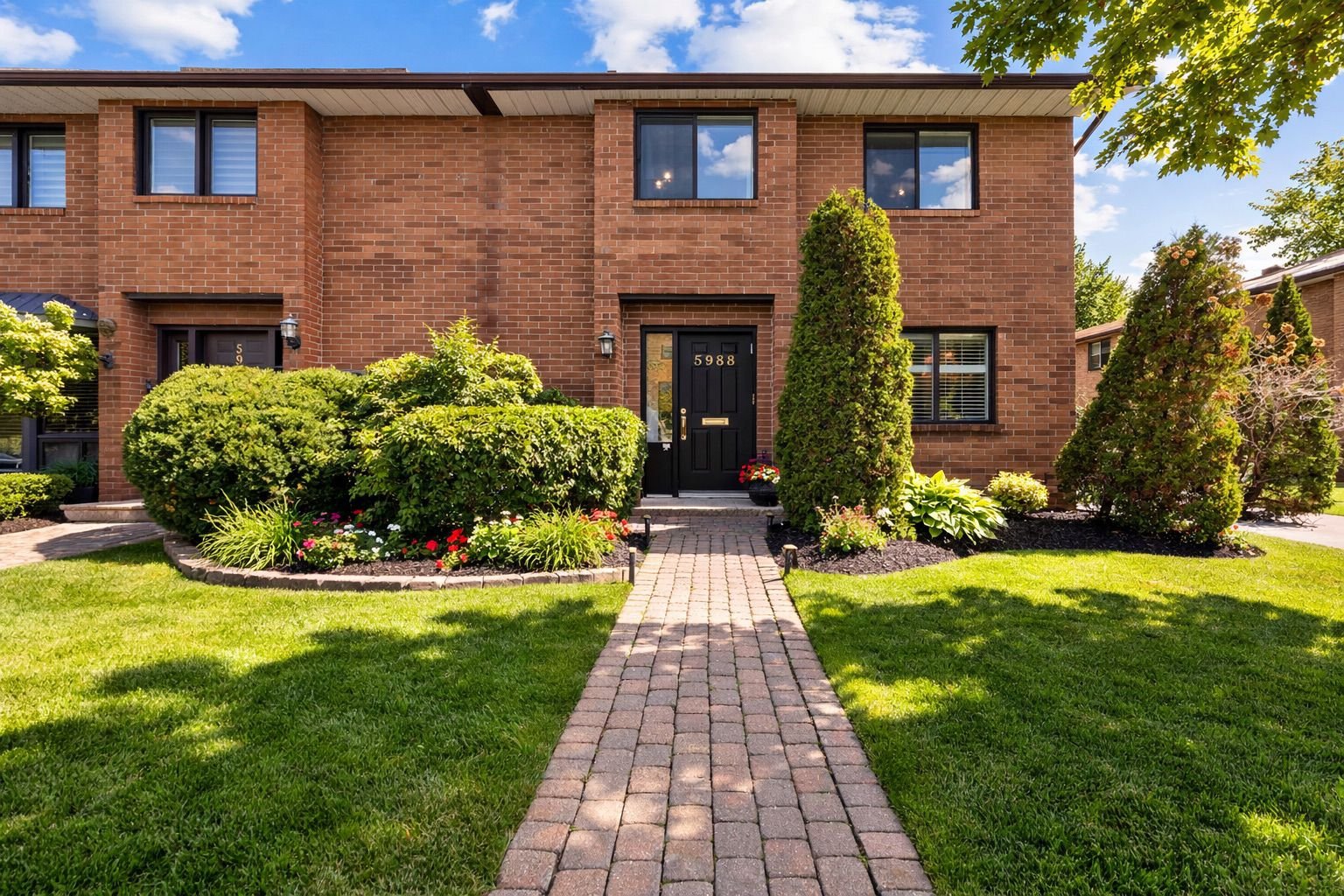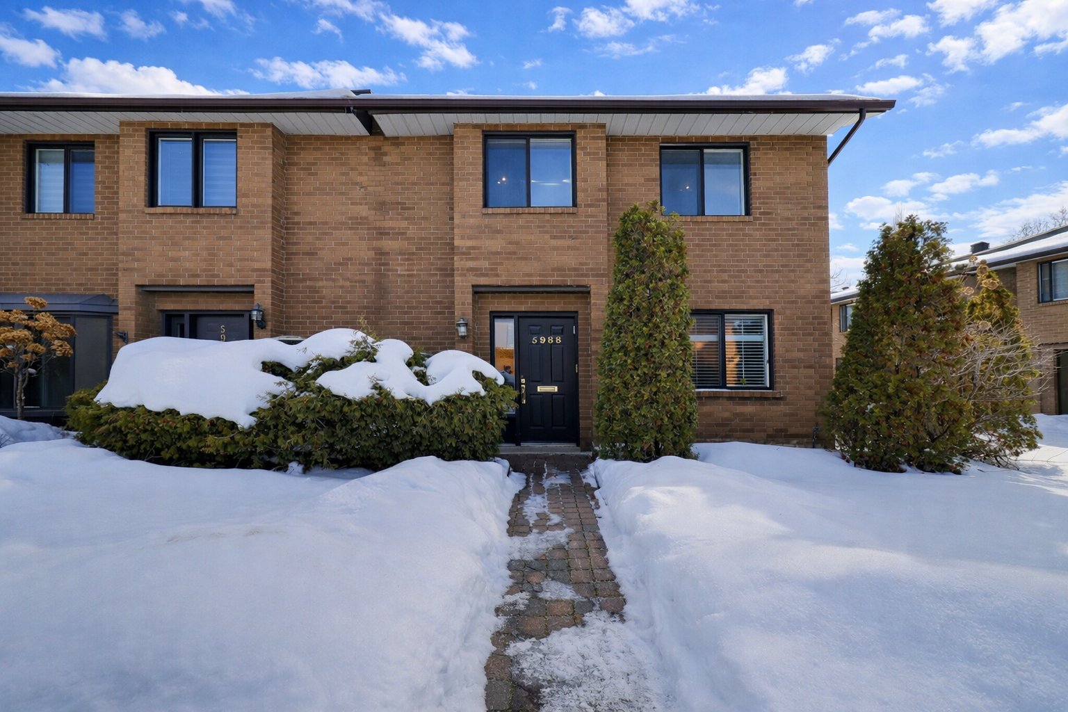 Spacieuse maison de ville d'angle de 4 chambres offrant confort, fonctionnalité et une configuration idéale pour la vie familiale. Grand hall d'entrée, espace de vie et salle à manger à aire ouverte lumineux et accueillant, parfait pour le quotidien et les réceptions. Profitez d'une cour arrière privée. Le sous-sol comprend une grande salle de jeux pouvant facilement servir de salle familiale ou de bureau, ainsi qu'une buanderie séparée pour plus de commodité. Cette maison comprend également deux places de stationnement intérieures avec accès direct au garage. Faibles frais de copropriété. Idéalement située à quelques minutes des centres comm