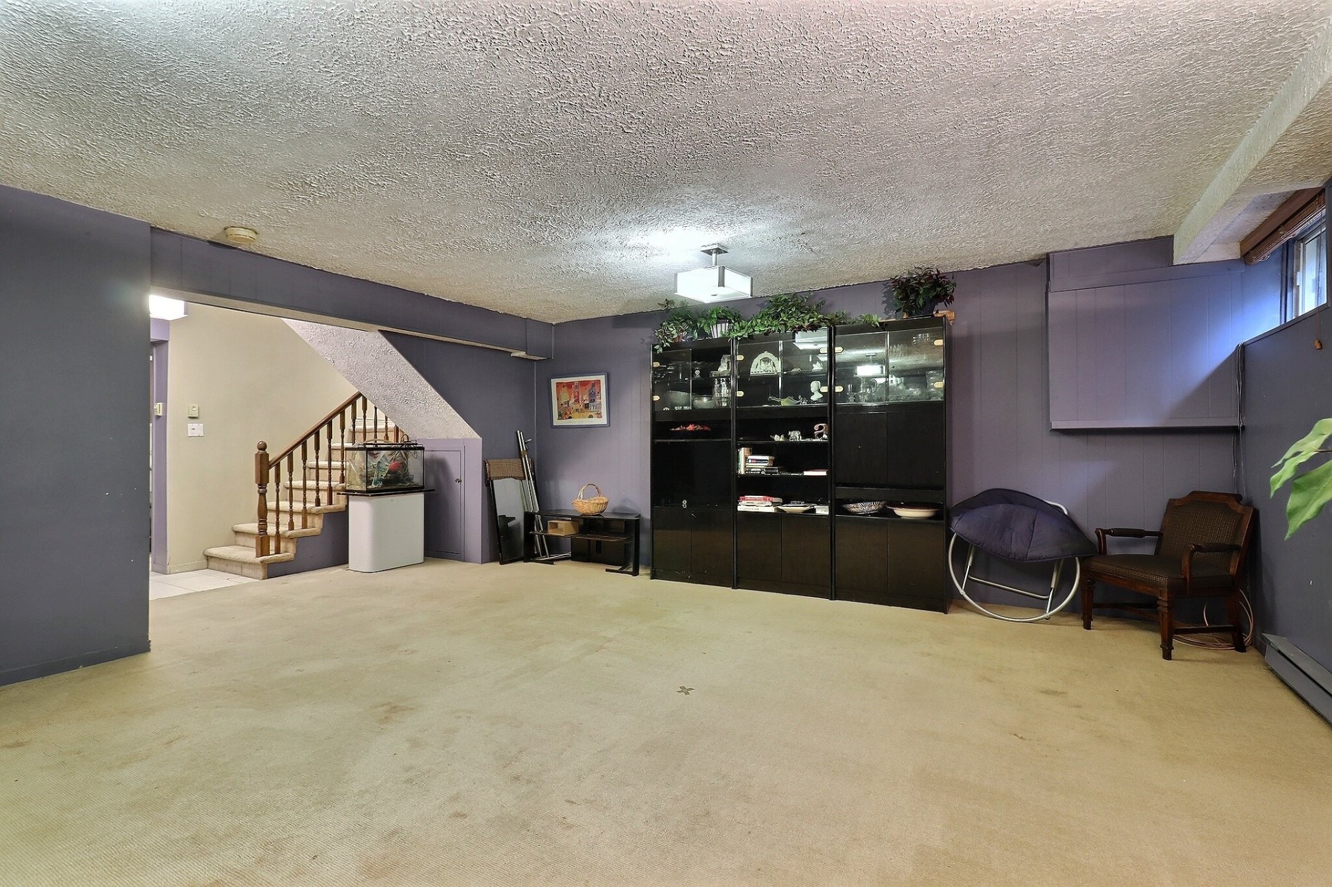 spacieuse salle de jeux au sous-sol offre un espace de vie