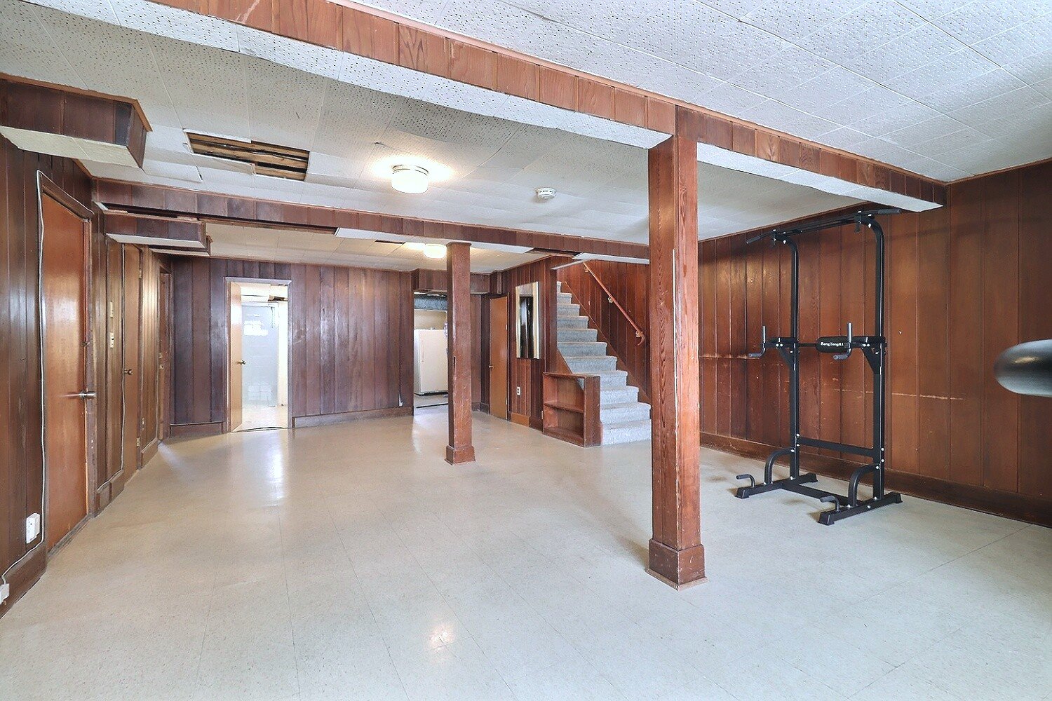 Le sous-sol comprend une salle de jeux et une chambre fermée