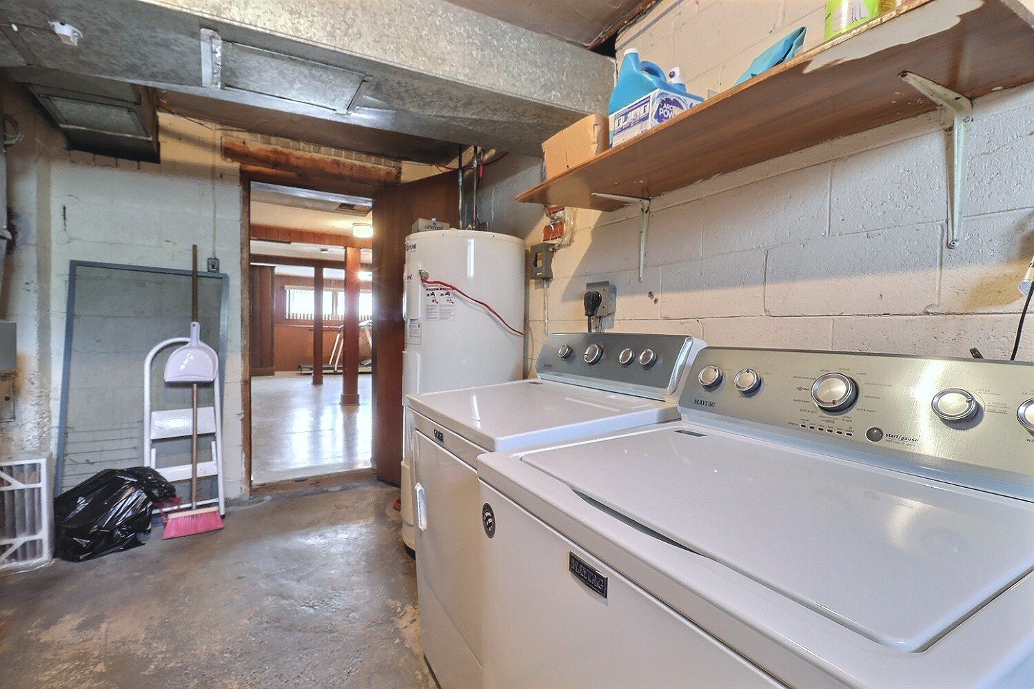 laveuse, sécheuse, luminaire dans l'entrée, congélateur au sous-sol
