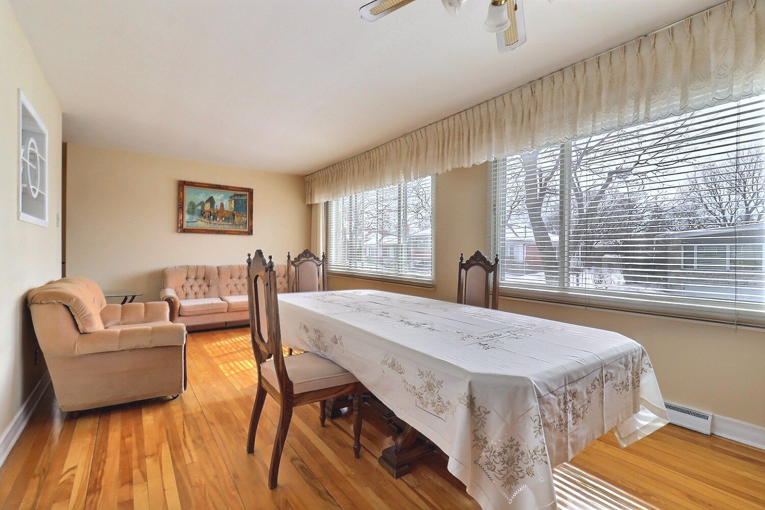 Ce bungalow lumineux et ensoleillé, habité depuis 40 ans, offre un espace de vie à aire ouverte comprenant salle à manger et salon, des planchers de bois franc et 3 chambres à l'étage (dont une suite parentale). Climatisation centrale et chauffage électrique. La cuisine avec coin repas et la cour arrière spacieuse sont parfaites pour les activités de plein air, le jardinage ou la détente. La grande salle de jeux comprend une chambre supplémentaire (ou un bureau), une buanderie séparée et de nombreux rangements. Situé dans un quartier recherché de Côte Saint-Luc, à quelques minutes du parc Kirwan, du centre aquatique CSL, des commerces, des ga